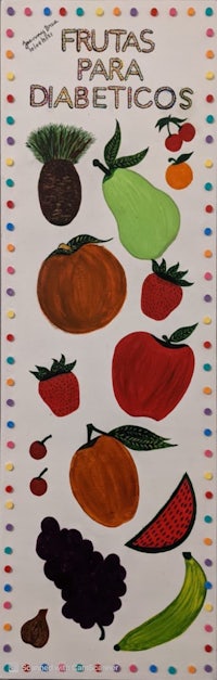 Este es un mensaje para cada persona que sufre de diabetis. Como deben de comer frutas saludables. Cada punto que se be es un pullon.
