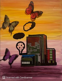 Este lo pinte mirando caer el atardeser y en lo bello que es la naturaleza.